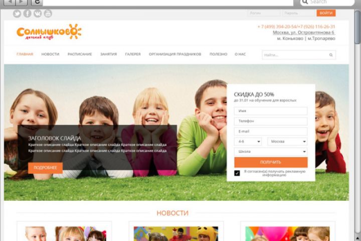 Сайт детского клуба