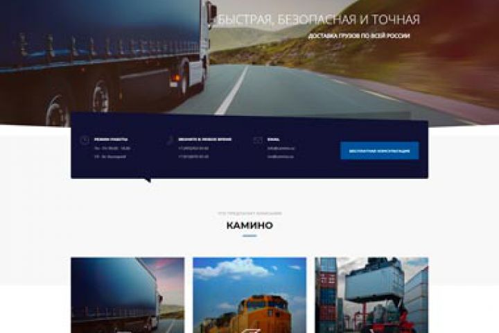 Корпоративный многостраничный сайт для транспортной логистической компании "Камино". Сделан на Вордпресс, уникальный дизайн, разработка логотипа
