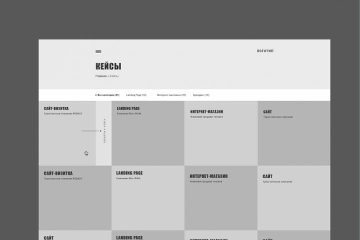 Прототип страницы кейсов для молодой студии