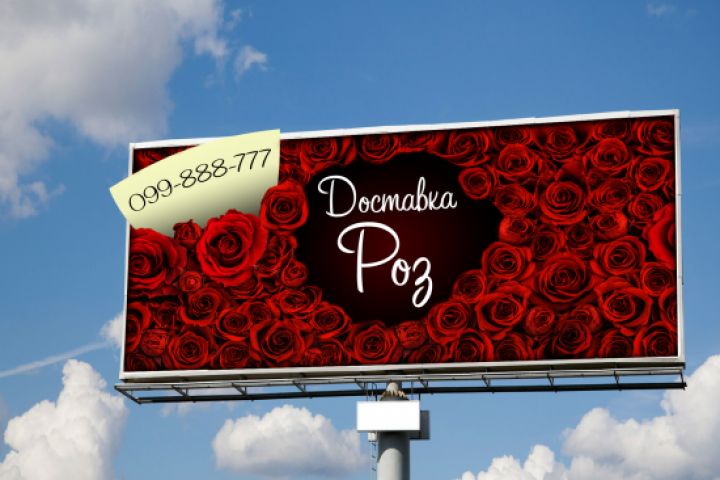 Отличительной чертой баннера является его обьемность за счет выпирающей надписи с номером телефона.