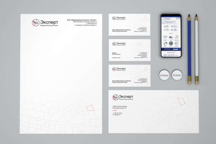Идея фирменного стиля состоит в понятном и лаконичном по дизайну логотипе вкупе с написанием названия компании без трансформации шрифта и сдержанной стилистике, которая поддерживает идею фирменного стиля в целом. Идея логотипа состоит в изучении строительных объектов «под лупой», что утрированно является основой деятельности компании МЦ Эксперт. Перспективное строительство, появление новых объектов на карте – вот те тезисы, которые отражены в дизайне фирменного стиля.
