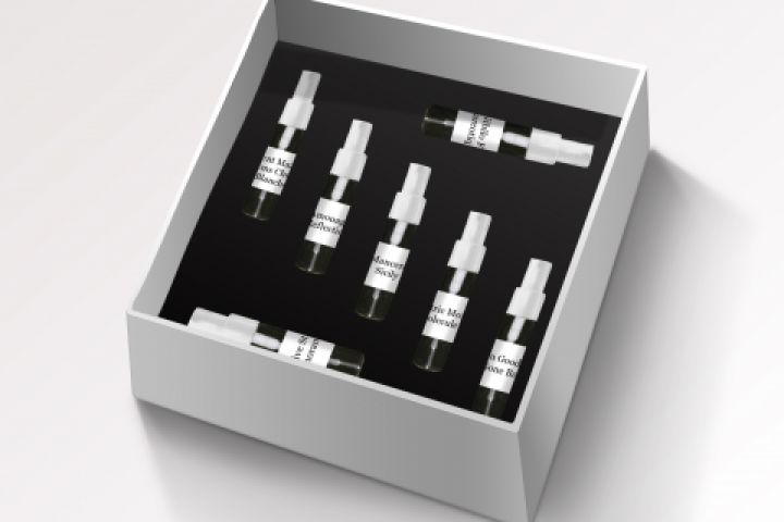 Дизайн упаковки для парфюма (распив), расположение флаконов, вкладыш, тиснение на крышке.