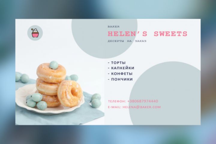 Визитка для пекарни второй вариант, более "домашний", он создает впечатления ручной работы.