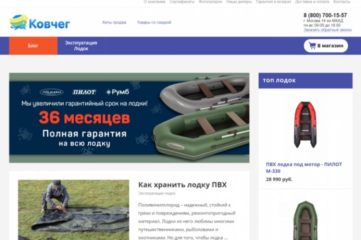 Блог для интернет-магазина лодок. Шаблонный дизайн. Стоимость проекта 3000 рублей. Срок выполнения 2 дня.