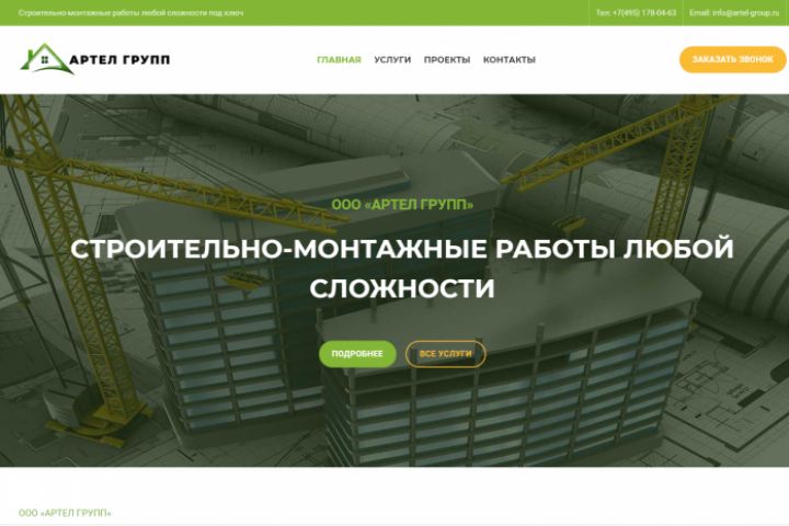Визитка для строительной компании. Сайт в процессе наполнения. Шаблонный дизайн. Стоимость работы 3000 рублей. Срок 2 дня.