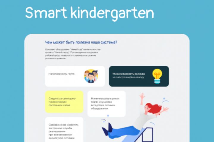 Основная задача- разработать лендинг для системы умного детского сада. Необходимо было объяснить что это и максимально подробно рассказать о преимуществах. Для заказчика было важно сохранить атмосферу детства и при этом показать серьезность проекта. Реализовано с помощью сдержанных основных цветов и ярких акцентных, которые так же использовались в иллюстрациях. Сайт представляется потенциальным покупателям. Адаптирован под все типы устройств и перенесен на Tilda
