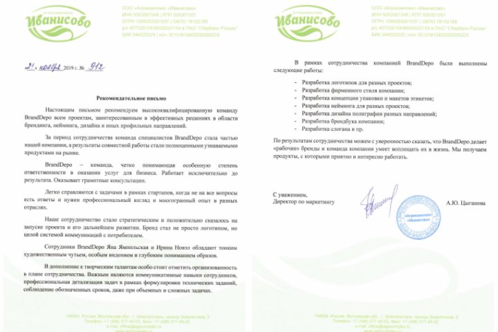 Рекомендательное письмо АК "ИВАНИСОВО"