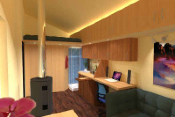 8. Спальное место хозяина на 1,5 этаже, даже в таком маленьком доме есть место для ночевки гостей, которые свободно размещаются на диване.