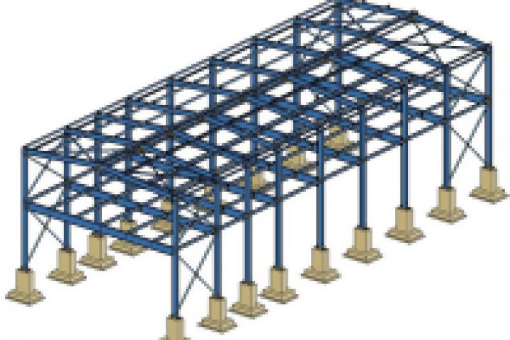 Пролет 12м. Высота первого этажа 4м, второго 3м.