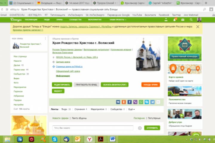 Наполнением контентом страницы храма Рождества Христова города Волжского в православной социальной сети "Елицы".