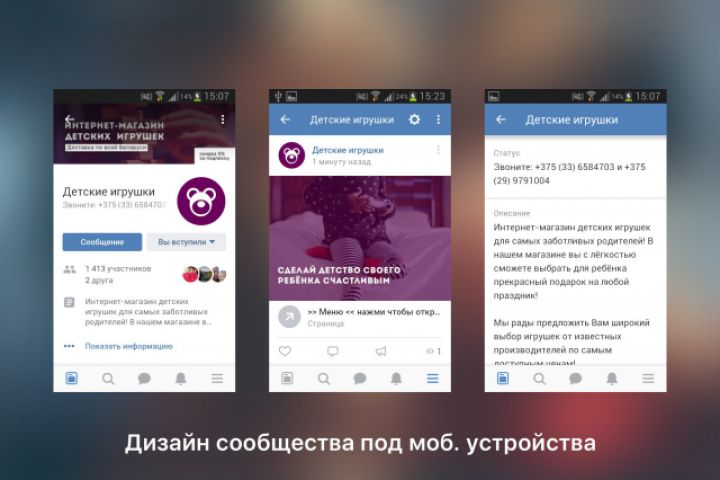 Обложка, миниатюра, баннер, лендинг на 4 блока, шаблон товара и развлекательного поста, отпимизация названия и описания сообщества, настройка сообщества (свои спам-фильтры, разделы).