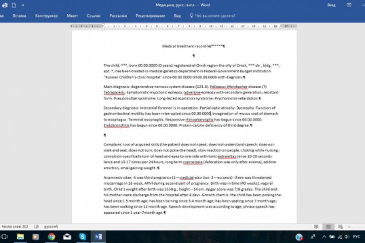 Переводила историю болезни мальчика. В истории также были результаты анализов и врачебные заключения.