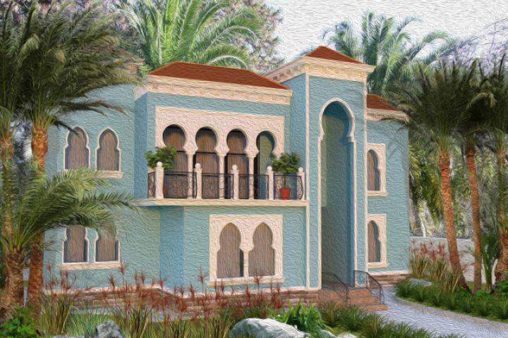 Дизайн дома в восточном стиле. 3дмакс, корона, фотошоп.