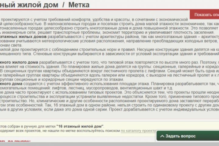 Текст для сайта "Чертежи.ру". 16-ти этажный жилой дом, чертежи.