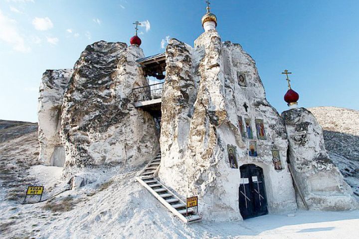 Тропа ведет мимо природных дольменов к самому большому из них, увенчанному золотой маковкой и крестом. Это древняя церковь, вырубленная в толще меловой горы . Потрясает факт, что, даже круговой крёстный ход, вырублен внутри горы! Не в Иордании и не в Греции, а в центре России, в полста километрах от миллионного города! Самого города ещё не было и в помине, когда здесь появились первые монахи и начали свой подвиг веры. Выходишь из подземной прохлады церкви, словно искупался в живой воде, - настолько чистая и сильная энергетика этого святого места!