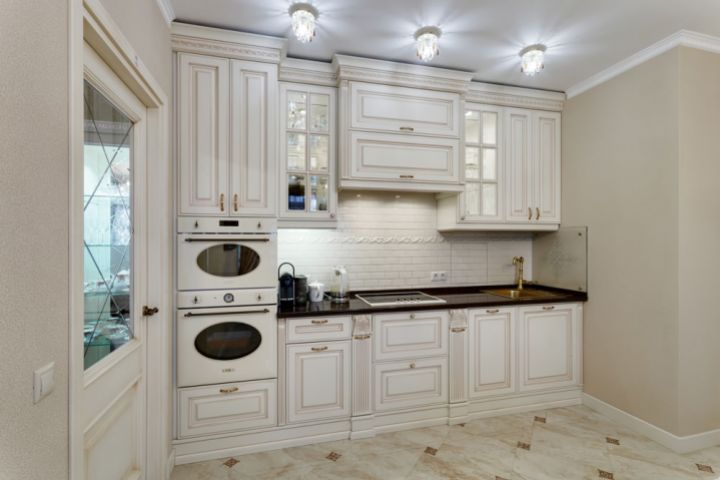 На 120 квадратных метрах разместилось холл, 4 комнаты, 3 санузла, кухня. Квартира делится на 2 зоны — приватная зона хозяина :спальня, кабинет, санузел и зону для приема гостей — холл, гостиную, кухню и гостевую спальню с двумя санузлами.