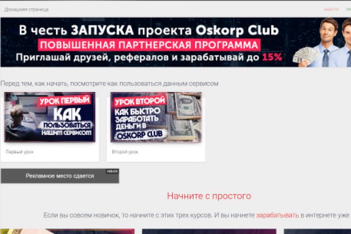 Сайт представляет собой набор нескольких модулей, одним из которых является продажа видео курсов по заработку в интернете. Реализовано пополнение через фри-кассу, вход через ВК и по логину с паролем.