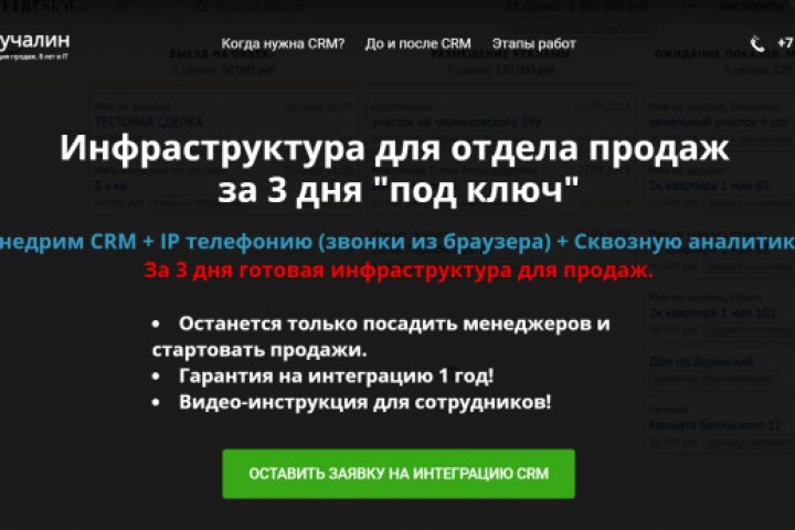 Внедрение CRM (чтобы все контакты и сделки хранились в одном месте и ставились задачи на звонки).