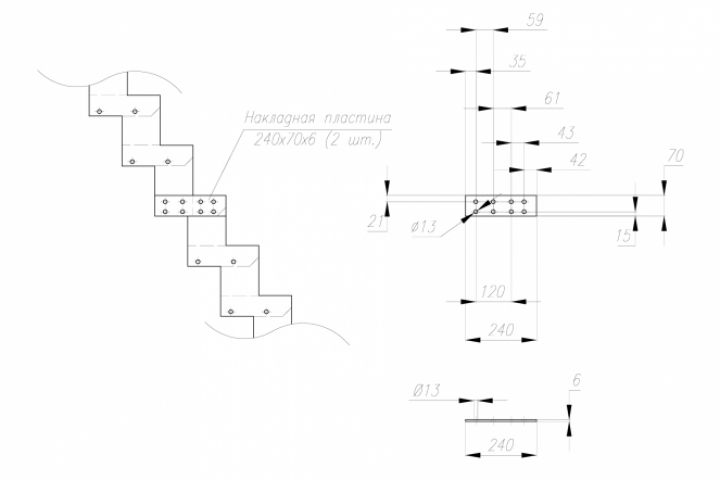 необходимо было по общим наброскам и старым проекта создать чертеж металлических косоуров для лестницы