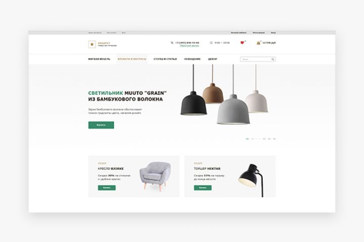 Сайт интернет-магазина «Квадрат», который занимается продажей товаров для интерьера.