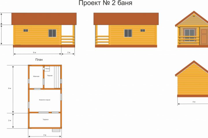 Проект бани 6х4 м + 2 м веранда. Отрисовка проекта в векторе. Формат cdr.