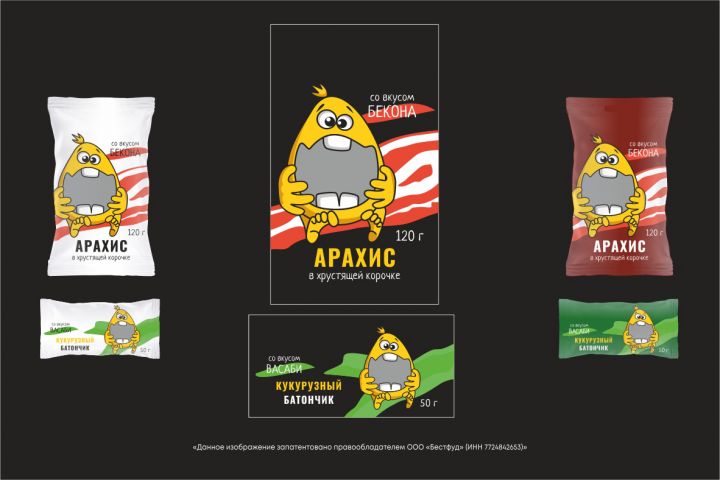 Персонаж Веселый Орешек (упаковка) конкурсная работа. «Данное изображение запатентовано правообладателем ООО «Бестфуд» (ИНН 7724842653)»