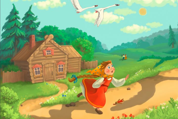 иллюстрация к сказке "Гуси лебеди"