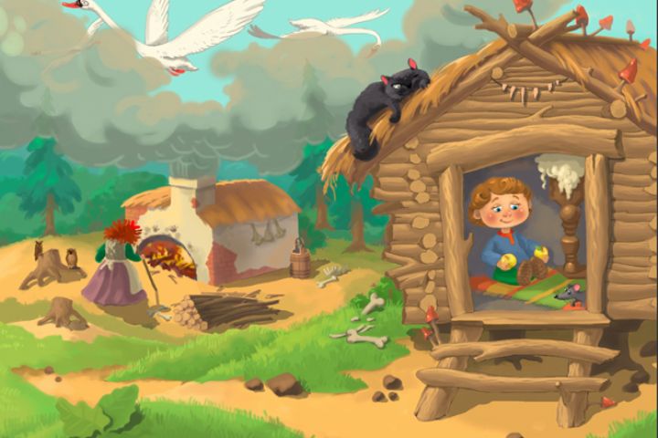 иллюстрация к сказке "Гуси лебеди" фрагмент