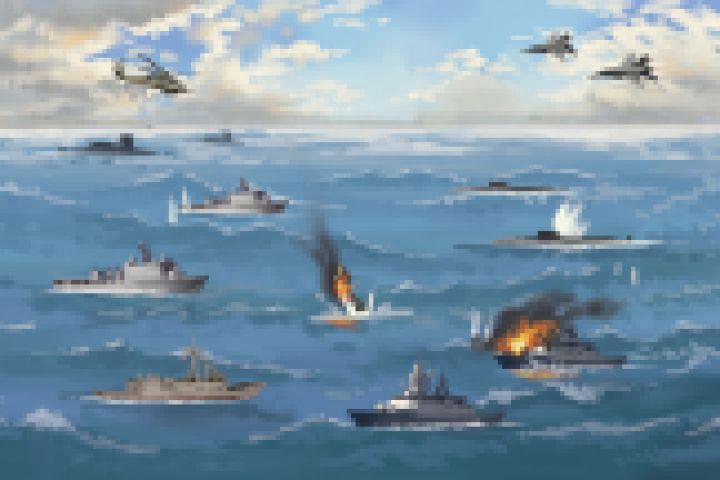Иллюстрация для спортивного клуба "Робин гуд". Задача стояла нарисовать морскую битву современной техники. Центр картин уменьшен-так как это раскладка на 3 плоскости и в центре будут мишени.