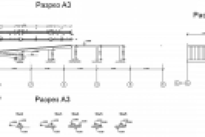 пешеходный мост типа пандус, обшая длина до 30м ,с переменной высотой, сложный в плане, с промежуточными площадками, с наклонными элементами, практически присутствуют все сложные элементы , характерные пешеходным мостам, монолит расчитанно в ЛИРЕ 9.6