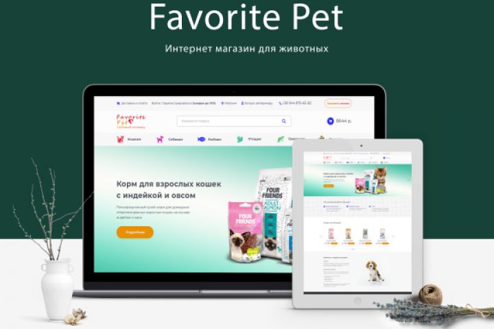 Дизайн сайта интернет магазина для животных. В этой работе хотела передать теплоту и любовь людей к своим питомцам. Дизайн использовала легкий, ничего лишнего, только доступность информации.