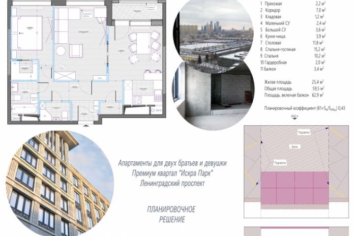 ЖК Искра Парк (апартаменты для двух братьев и девушки)