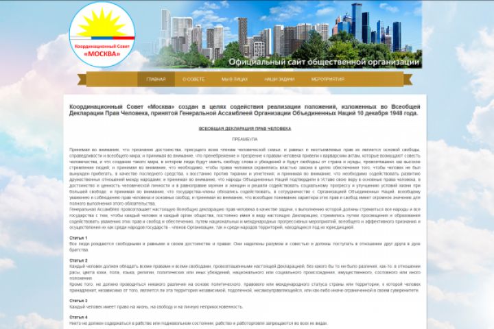 Разработка и поддержка сайта (на платформе «Joomla!») для «Координационный Совет "Москва"». Дизайн и вёрстка сайта сделаны исходя из требований заказчика.