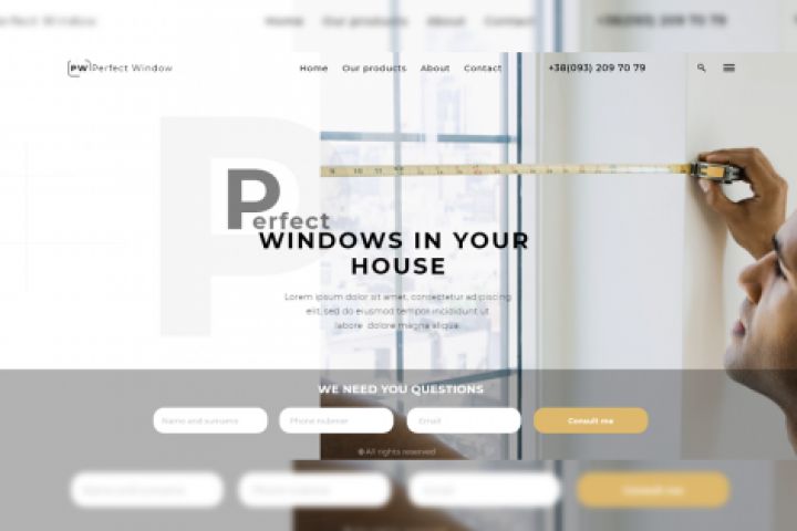 Первый экран лендинга на тематику установки окон