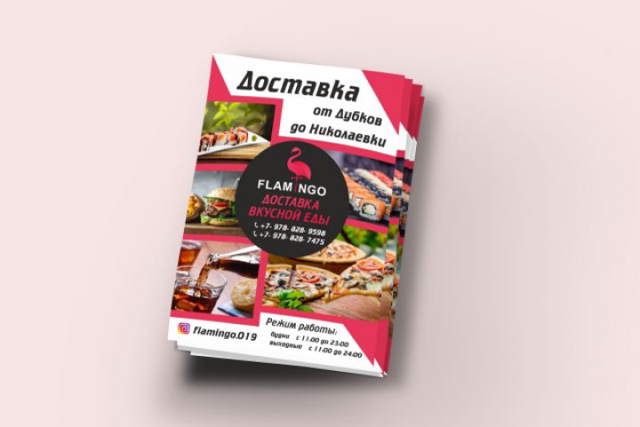 Разработка дизайна листовки для сервиса доставки быстрой еды FLAMINGO.