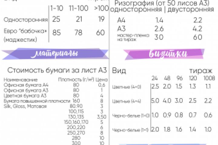 Прайс-лист для полиграфической компании