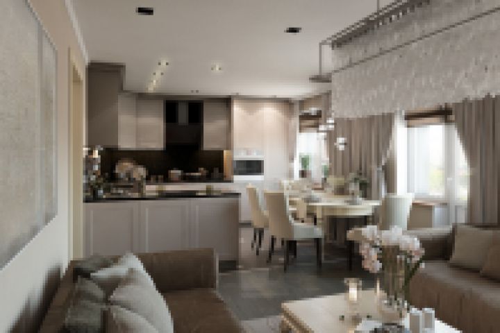 Дизайн-проект квартиры 100м2. Кухня-гостиная. Комендантский пр-т