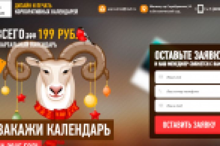 Красивый и яркий Landing Page по изготовлению календарей. Применен Parallax эффект.