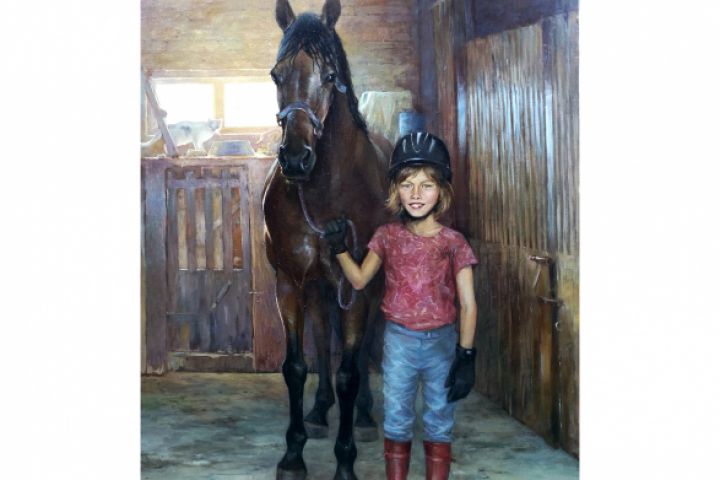 Портрет девочки Саши и коня Ледника. Написаны с натуры.