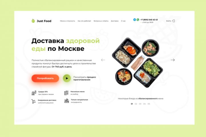 Разработка дизайна Landing Page для сервиса доставки здорового питания в Москве.