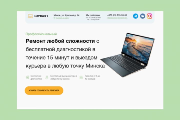 Задача: разработать Landing Page для сервиса ремонта техники в городе Минск.