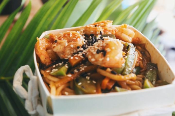 Съемка и монтаж биролла для рекламы в соц сетях. Реклама кухни по приготовлению корейской лапши в коробочке Вок. в городе Санья.