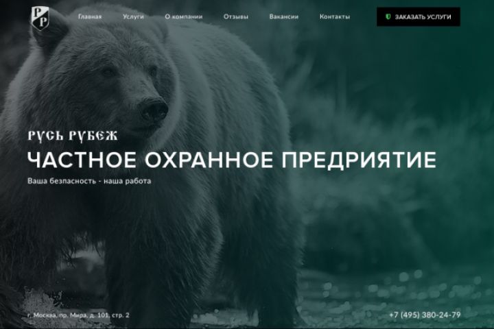 Стояла задача создать лендинг для ЧОП "Русь-Рубеж"