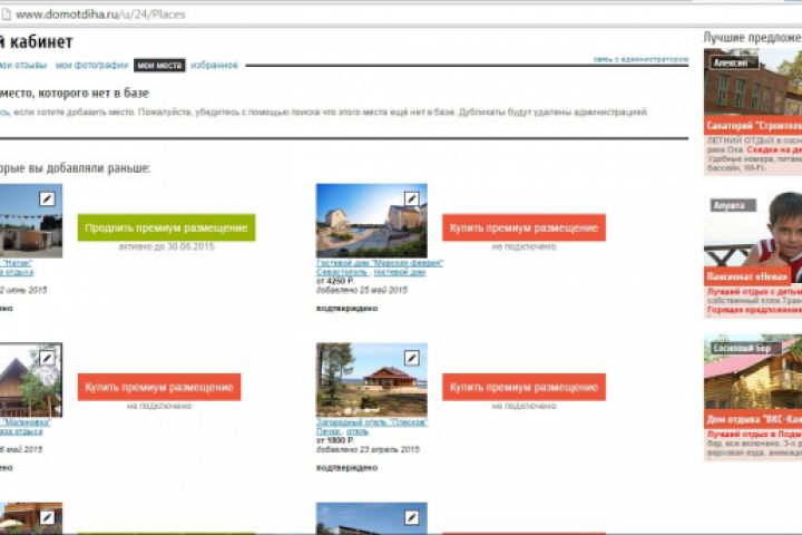Наполнение сайта контентом (местами отдыха и оздоровления, отелями, гостевыми домами, достопримечательностями). Было внесено более 2400 объектов