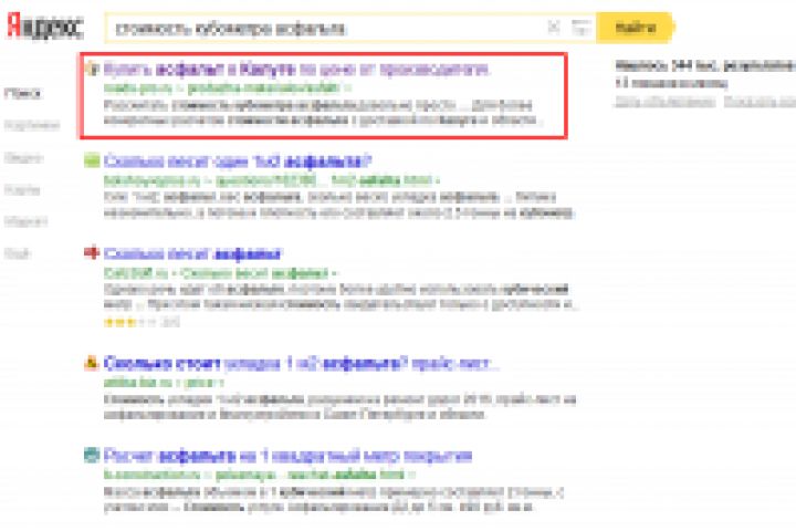ТОП 1-2 по запросу "стоимость кубометра асфальта"