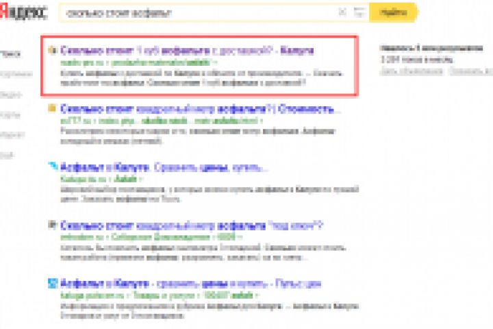 ТОП 1-2 по запросу "сколько стоит асфальт"