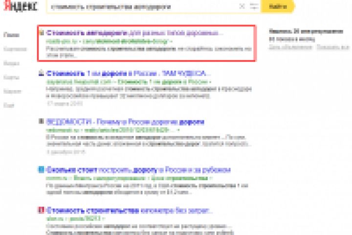 ТОП 1-2 по запросу "стоимость строительства автодороги"
