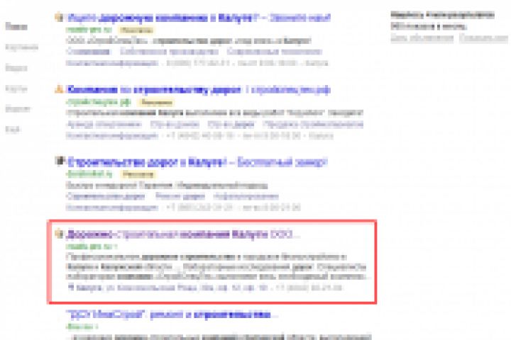 ТОП 1-2 по запросу "строительство дорог компании"