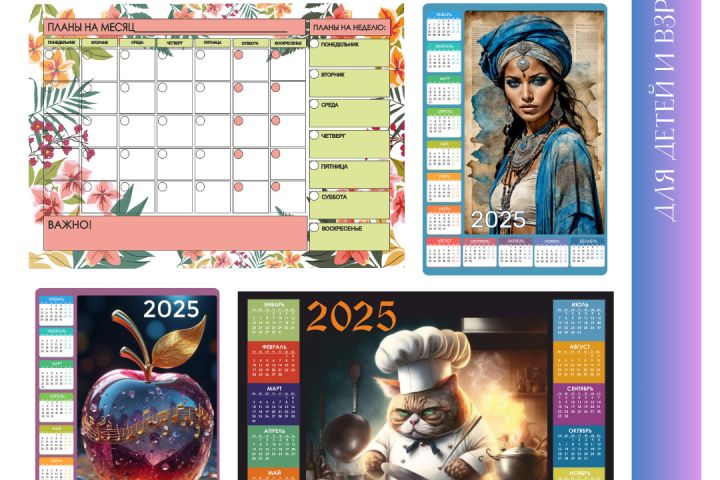 Вы предоставляете мне изображение высокого качества, и я подготавливаю файл для печати постера, плаката, календаря на указанный вами год. Форматы могут быть индивидуальными или стандартными A3/A4, с цветовым профилем CMYK, готовым для печати в типографии или на цветном принтере.