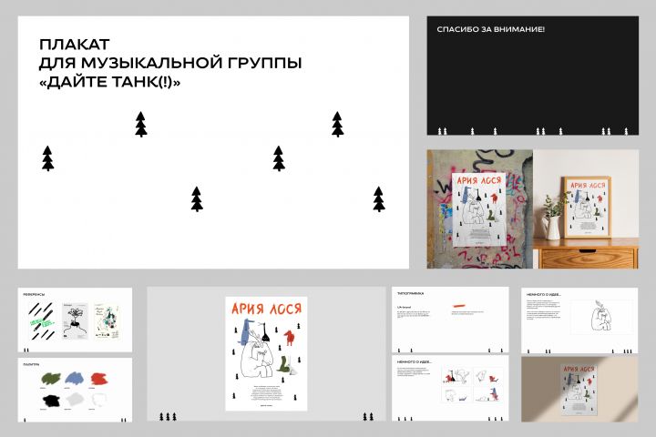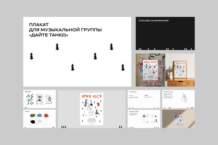 В презентации описано как был придуман плакат для музыкальной группы, идеи, референсы, типографика и палитра